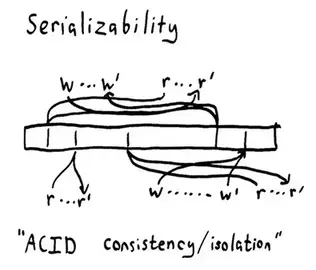 如果我们说操作的历史等价于发生在某个单一原子顺序中的操作历史,但不说调用和完成时间,我们就得到了一个称为可序列化的一致性模型。这个模型比你想象的要强得多,也比你想象的要弱得多。