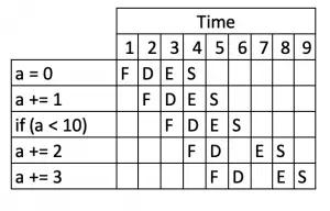 对于上面的程序,处理器可能会预测 if(< 10)可能为真,因此它将表现得好像指令a += 2是下一个要执行的指令。